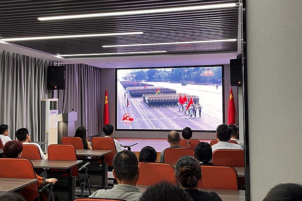 公司總經理在活動總結時表示,組織這次集體觀看活動,既是一次深刻的愛國主義教育,也是一次凝聚團隊的精神洗禮。抗戰精神的核心是天下興亡、匹夫有責的愛國情懷,是百折不撓、堅忍不拔的必勝信念。希望全體員工將這種精神融入日常工作,立足崗位建功立業,共同推動企業高質量發展,為實現中華民族偉大復興貢獻企業力量。